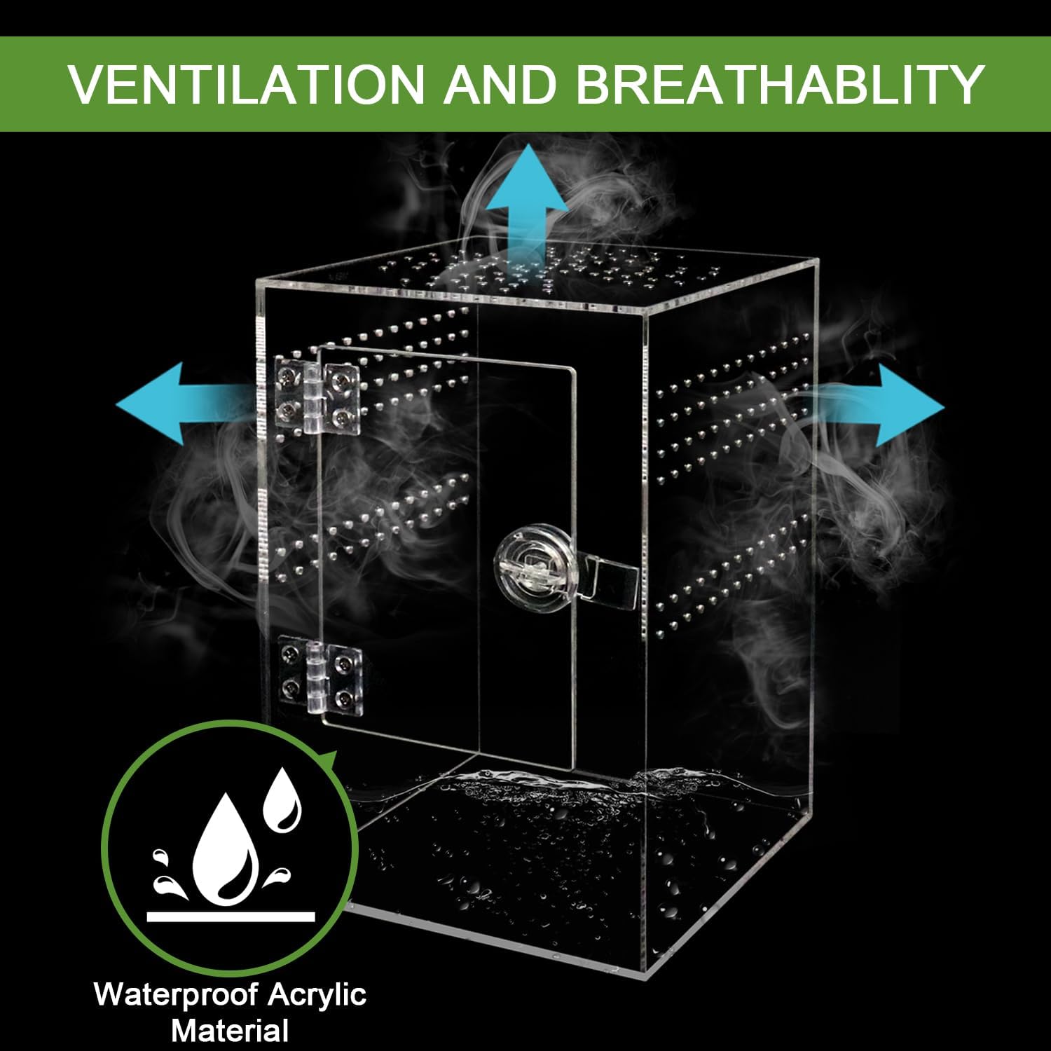 - 【Waterproof and Ventilated Spider Terrarium】Comes with molded bottom, this acrylic tarantula enclosure can hold water or substrate without leaking. Plenty of ventilation holes on side and top of the terrarium to ensure a constant airflow within
