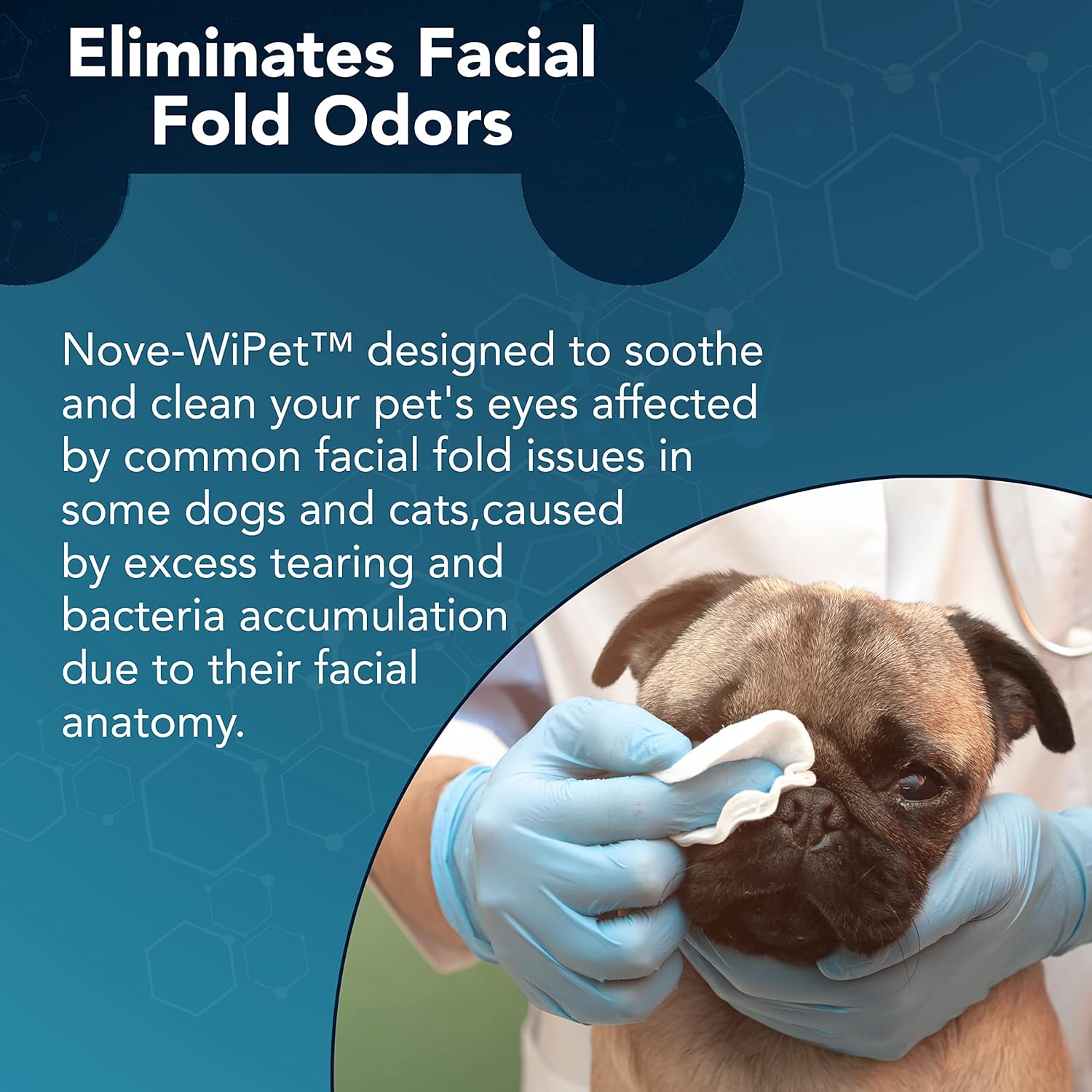 NOVEHA Dog Eye Wipes, Gentle Tear Stain Remover, Eye Hygiene, and Allergy Relief (60 Counts)