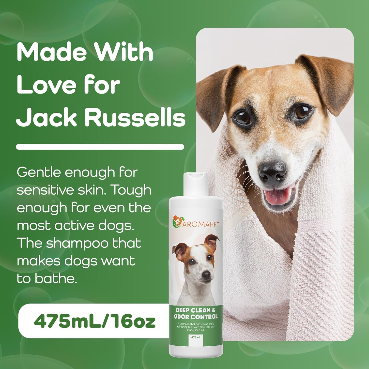 - Enhanced Coat Support – Developed to nourish and reinforce your dog’s coat with aloe vera, argan oil, and grape extract, this hydrating dog shampoo supports thick and short fur alike. Regular use leaves coats noticeably softer, shinier, and smelling fresh—perfect for dogs with active outdoor lifestyles, such as Jack Russell terrier.