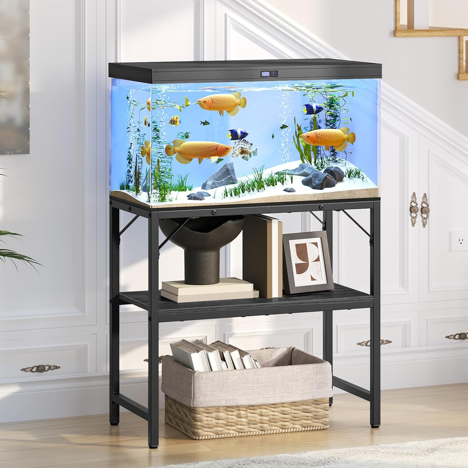 - Versatile Functionality: Not just for fish tanks, the aquarium rack can also hold glass containers, reptile tanks, etc. Perfect for bedroom, living room, office, and more, it doubles as a storage rack for books, plants, printers, and other items