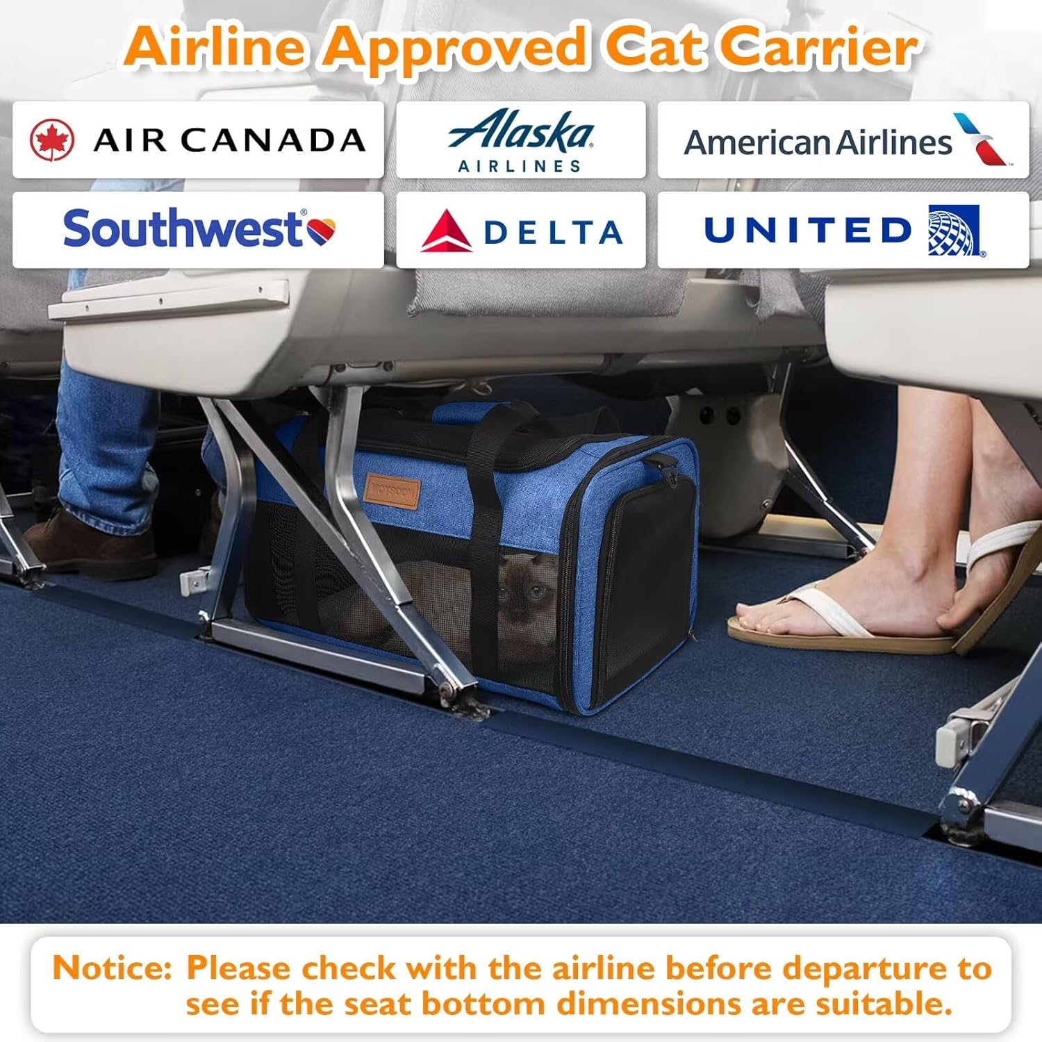 PETUX Pet Carrier Airline Approved, 17"x11"x9.5" Portable Cat Carrier Soft with Anti-Scratch Mesh for Small Cats up to 12 lb, Top Open Breathable Dog Carriers for Puppy up to 10 lb (Blue)