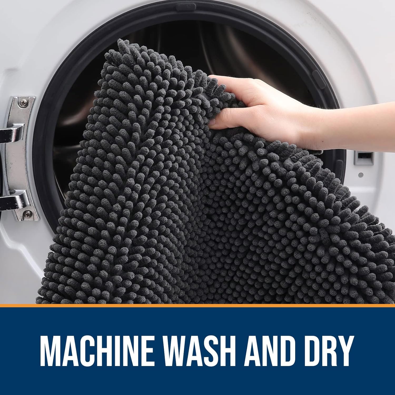 OLANLY Dog Door Mat for Muddy Paws 59x32, Absorbs Moisture and Dirt, Absorbent Non-Slip Washable Doormat, Quick Dry Chenille Mud Mat for Dogs, Entry Indoor Entryway Carpet for Inside Floor, Dark Grey