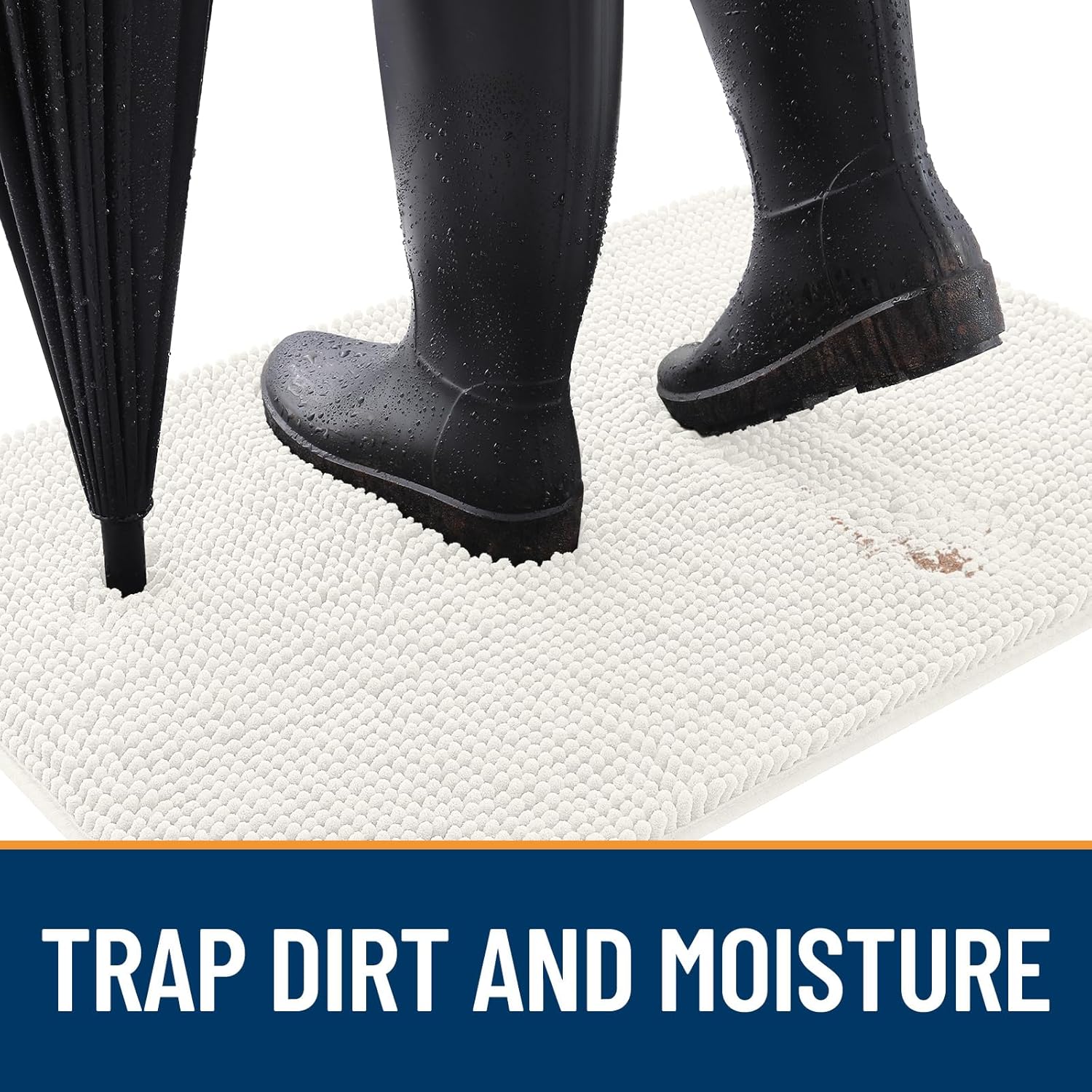 OLANLY Dog Door Mat for Muddy Paws 59x20, Absorbs Moisture and Dirt, Absorbent Non-Slip Washable Doormat, Quick Dry Chenille Mud Mat for Dogs, Entry Indoor Entryway Carpet for Inside Floor, Ivory