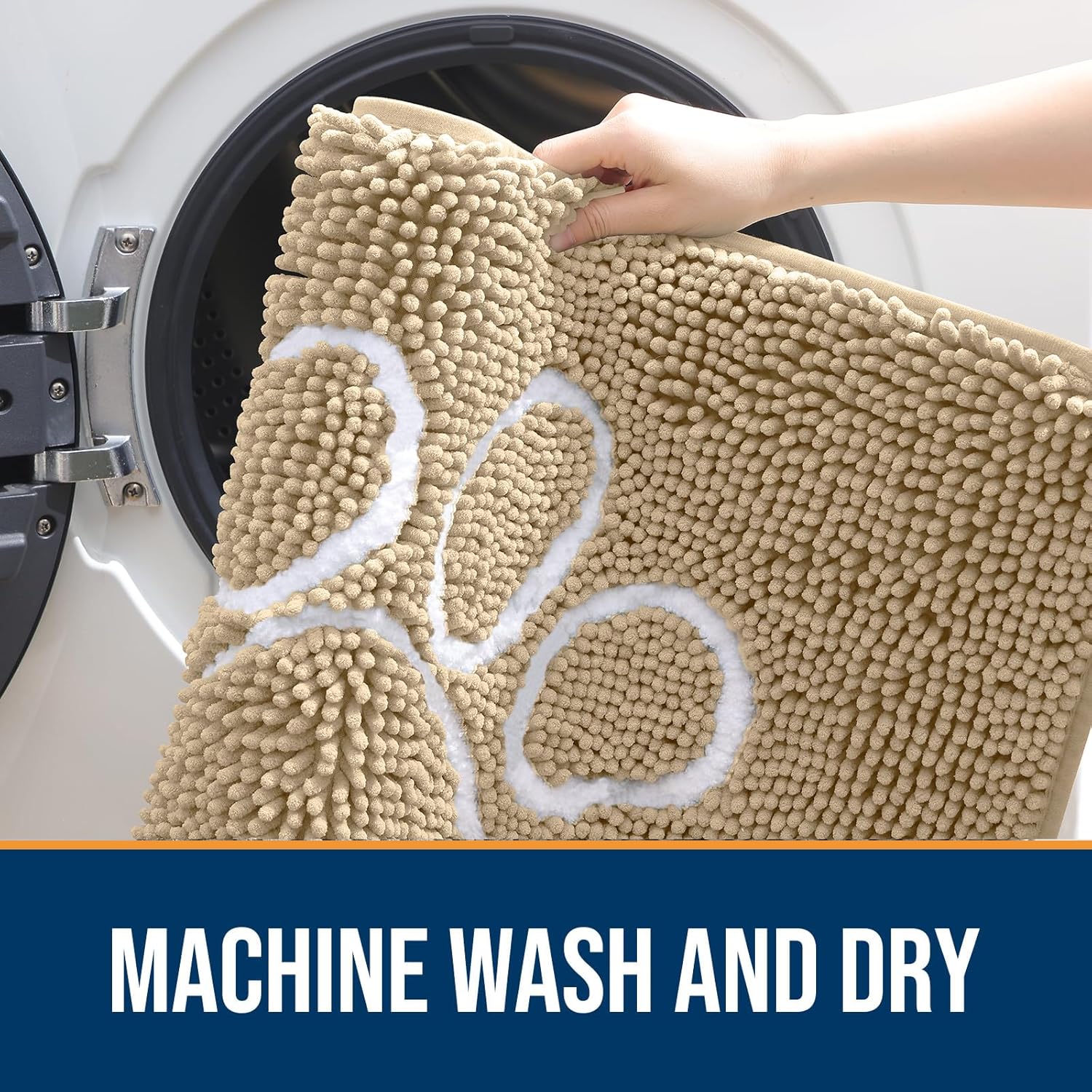 OLANLY Door Mat for Muddy Dog Paws 59x35, Ultra Absorbent Chenille Mud Doormat with Paw Print Design, Non-Slip Washable Doormat for Indoor Entryway, Quick-Dry Pet Bed Mats for Dirty Dogs, Beige