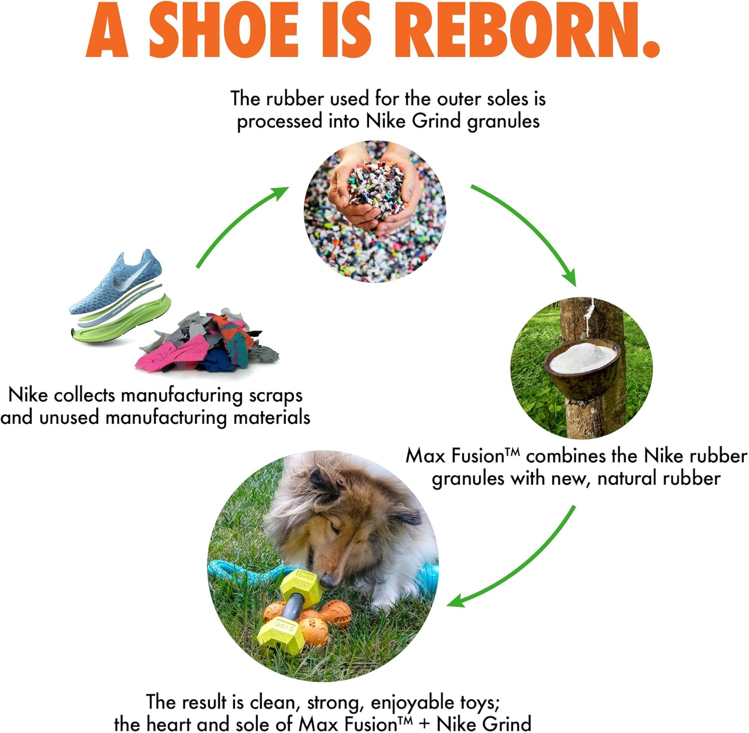 - SAFE & DURABLE RUBBER MATERIAL: Crafted with a durable blend of Nike Grind rubber and natural rubber, this strong dog toy for aggressive chewers is built to last through repeated play sessions. The thick rubber material provides a firm yet flexible feel that’s safe for your dog’s teeth and gums, making it a great option for teething puppies or adult dogs that love to gnaw. No sharp edges, no weak spots—just long-lasting fun.