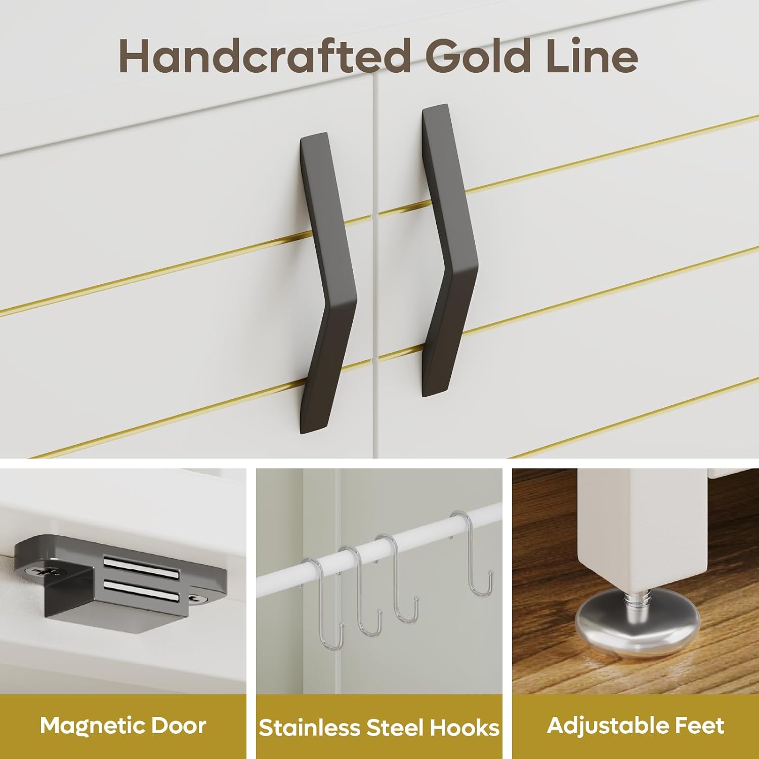 - Aquarist-Friendly Design: Designed for dedicated aquarists, the 20-gallon fish tank stand features Magnetic Cabinet Doors for easy access, four hooks for hanging nets or tools, and adjustable feet for improved stability