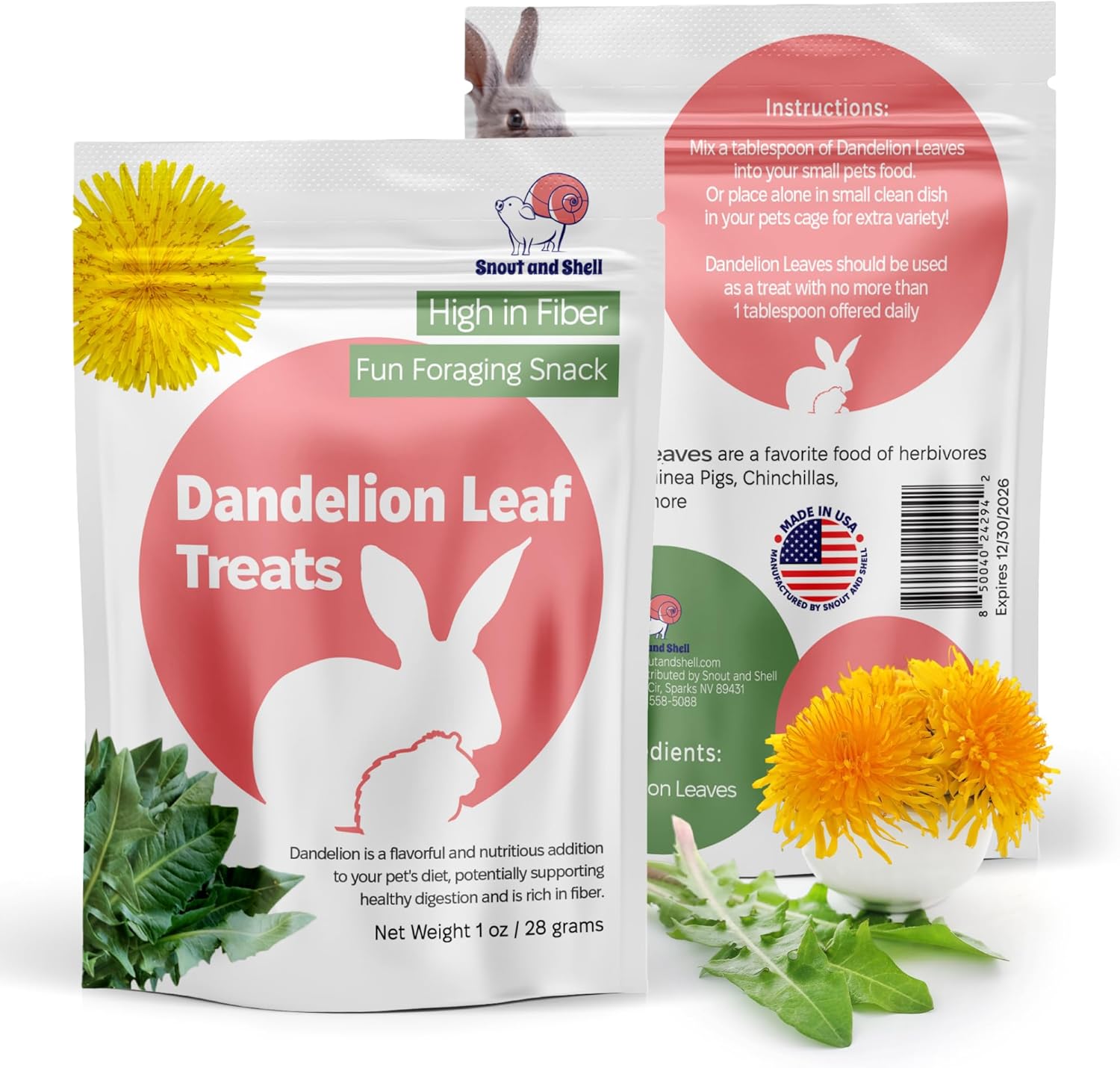 Snout and Shell Dandelion Leaf Treat for Small Pets – 1 oz (28g) | High-Fiber, Natural Foraging Snack for Rabbits, Guinea Pigs, Chinchillas, Squirrels & More