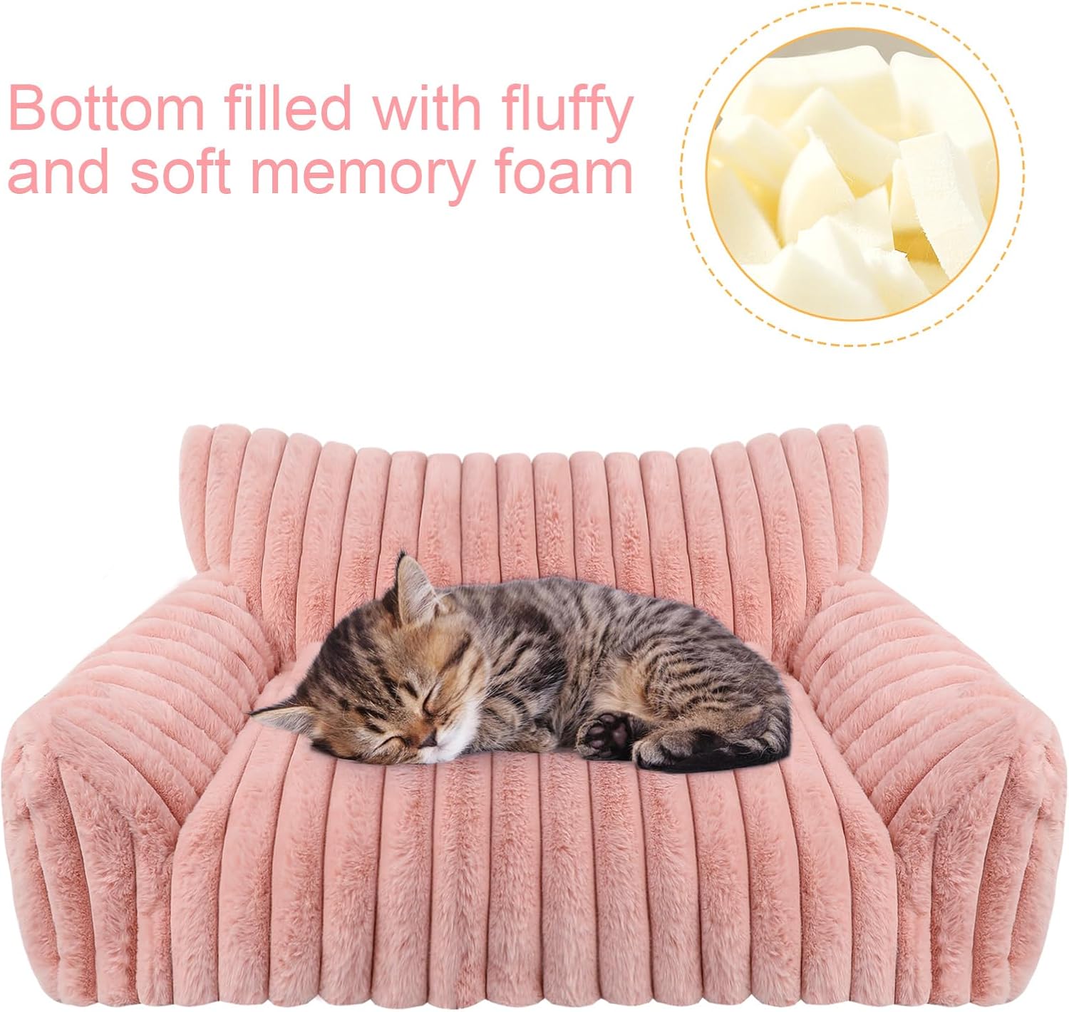 Cute Cat Couch Bed for Indoor Cats, Fluffy Pet Cat Sofa with Premium Soft Corduroy Fleece, Cute Small Dog Beds for Small Dogs, Fuzzy Puppy Chair with Removable Washable Cover (24x18x10,Pink)