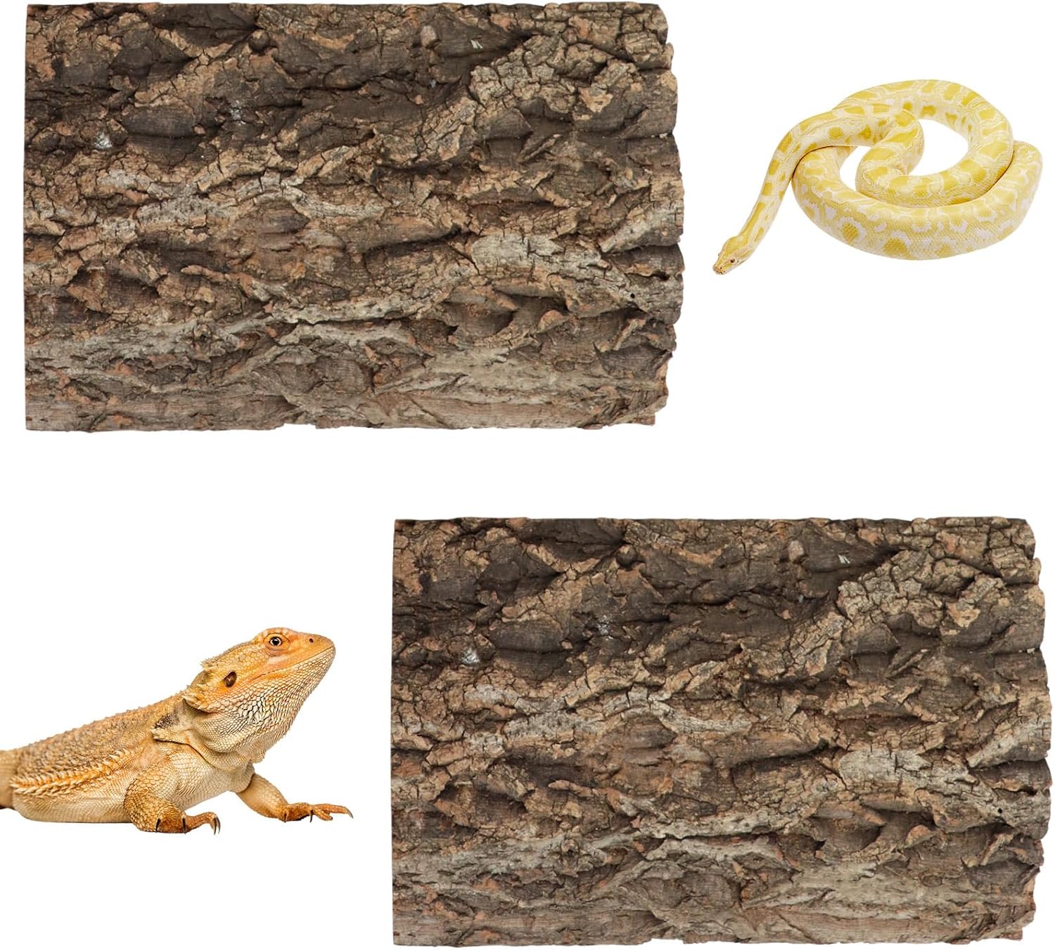 - Available in Two Sizes: Choose from two versatile size options to suit your setup—Small (11.8 × 7.9 inches) and Large (15.7 × 11.8 inches). This 2-pack offers flexible terrarium decor solutions for a wide range of reptile and amphibian enclosures.