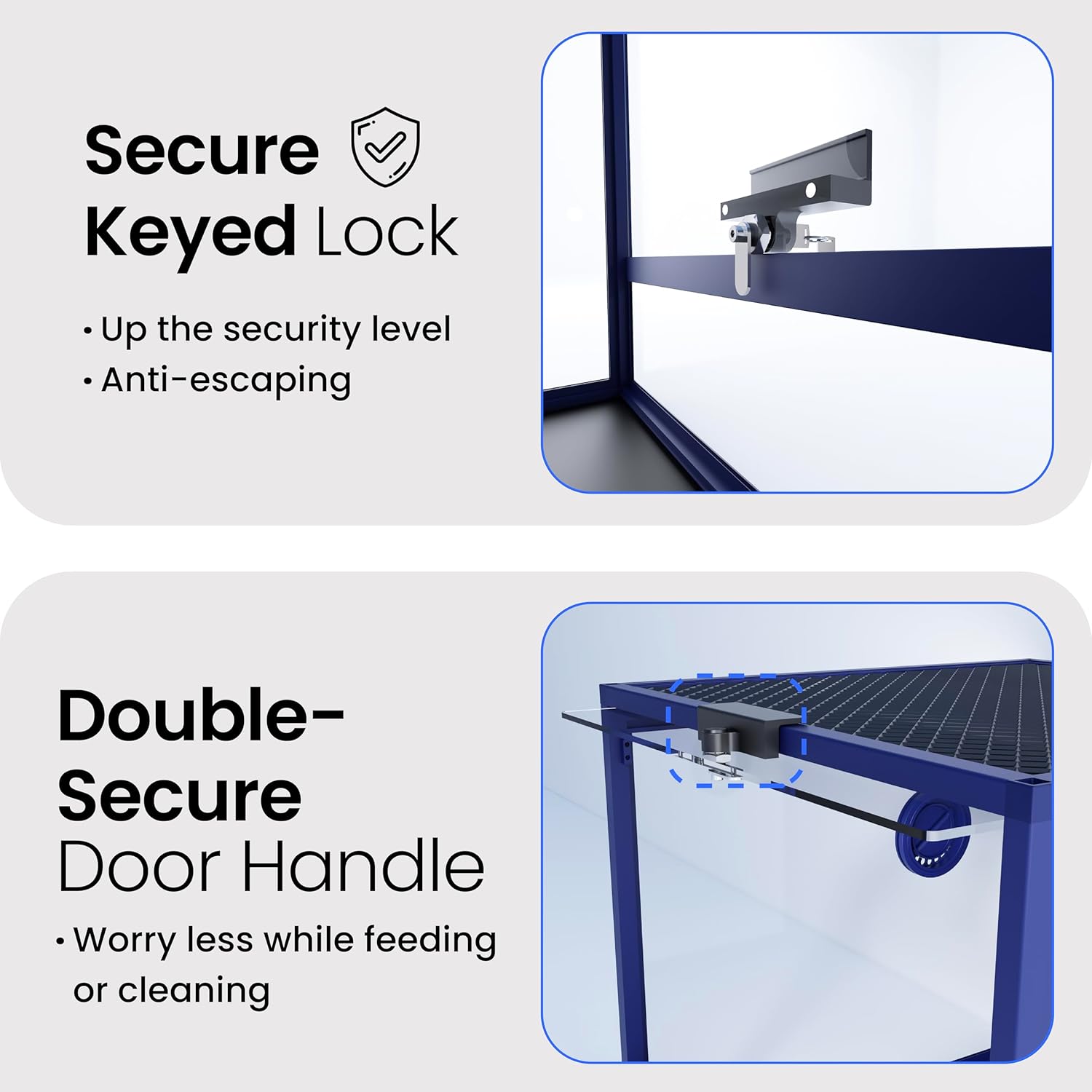 - 【Lock Included】A tempered glass door with a safety keyed lock to prevent escape and accidental opening by others. NO GAPS FOR ESCAPING with fully closed structure. Rigid tempered glass doors for extra safety.