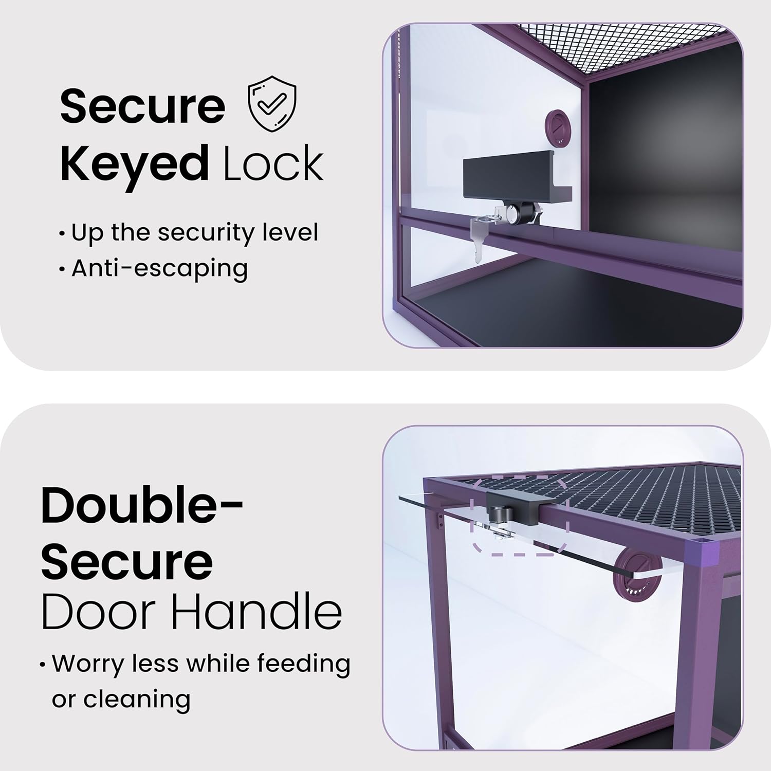 - 【Lock Included】A tempered glass door with a safety keyed lock to prevent escape and accidental opening by others. NO GAPS FOR ESCAPING with fully closed structure. Rigid tempered glass doors for extra safety.