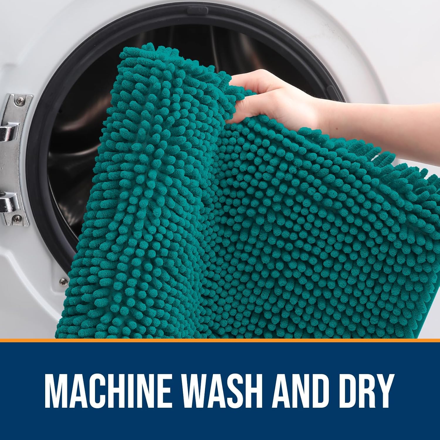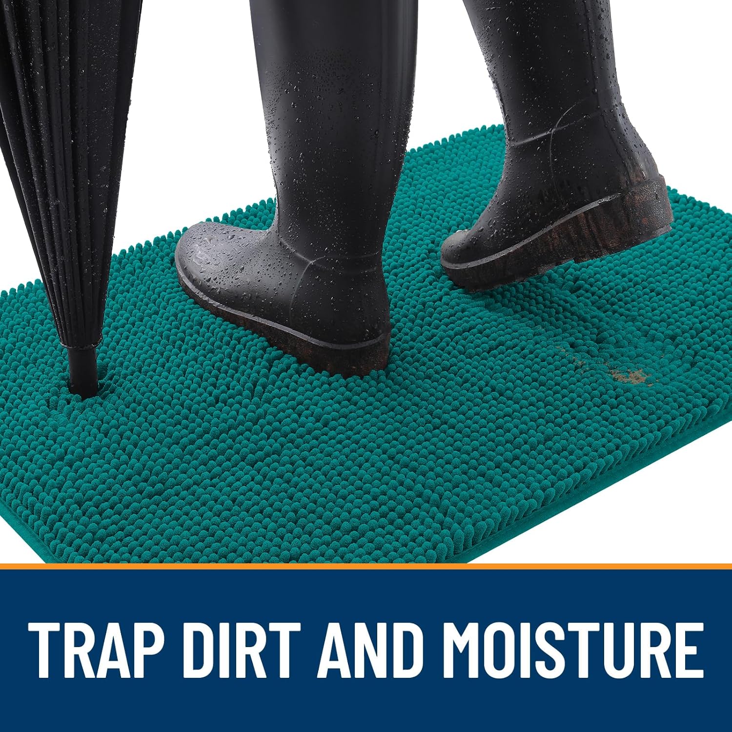 OLANLY Dog Door Mat for Muddy Paws 36x24, Absorbs Moisture and Dirt, Absorbent Non-Slip Washable Doormat, Quick Dry Chenille Mud Mat for Dogs, Entry Indoor Entryway Carpet for Inside Floor, Lake Blue