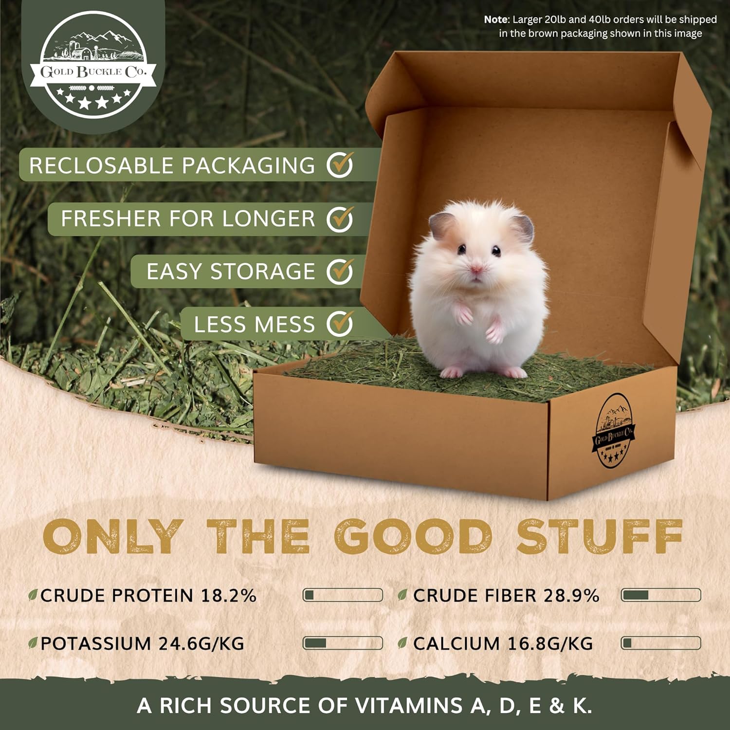- Fresher Value - We hand pick and ship our alfalfa hay bales in our premium packaging, designed to keep the good stuff in and the bad stuff out, ensuring your alfalfa straw arrives fresher and high in moisture content.