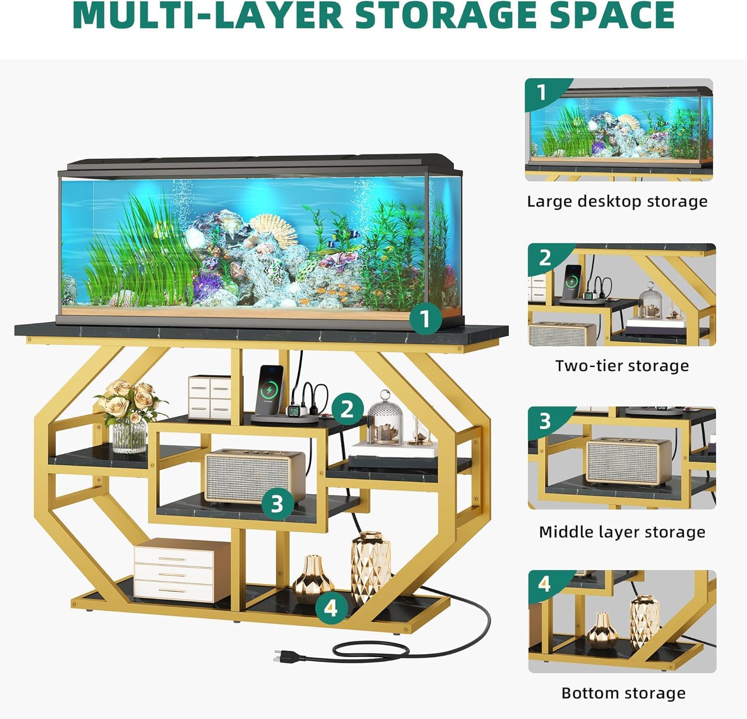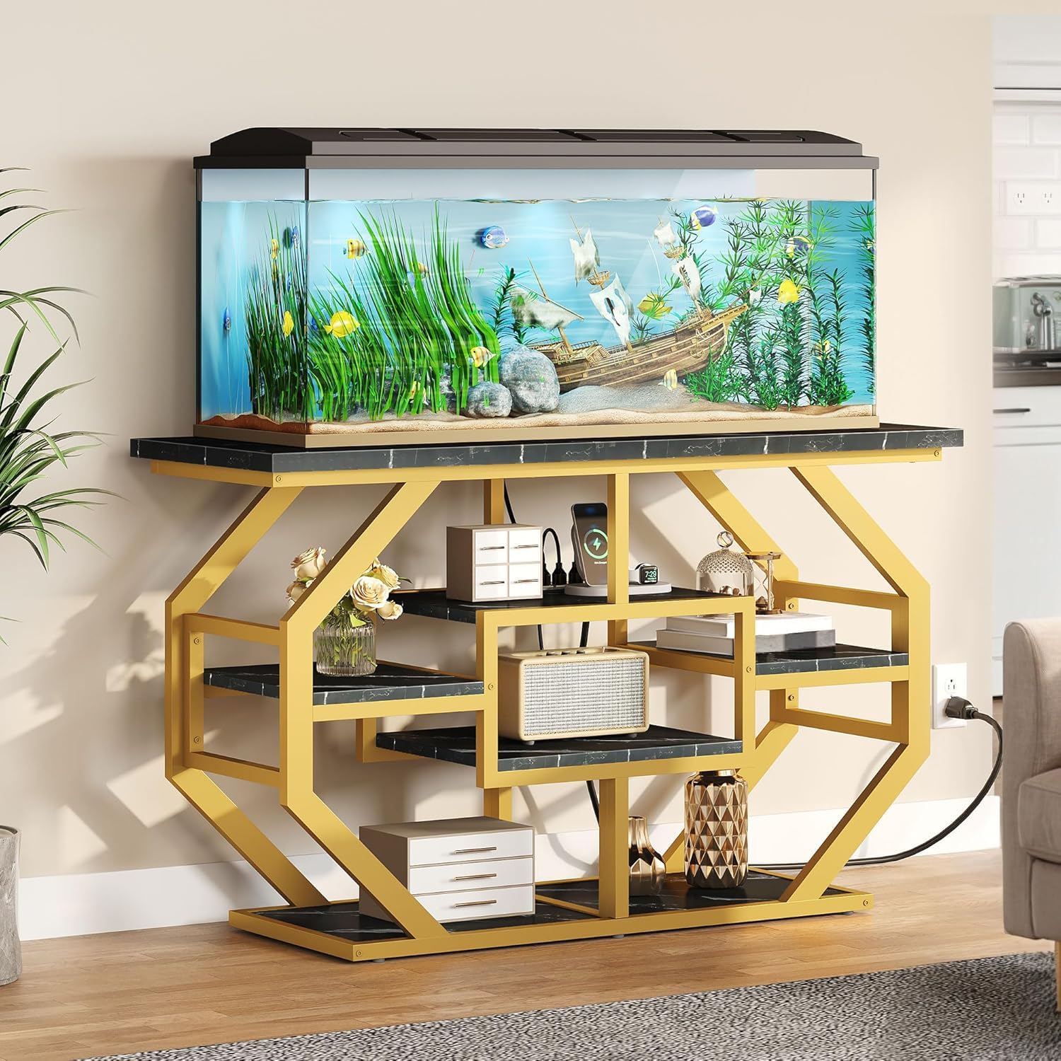YITAHOME Heavy Duty 55-75 Gallon Fish Tank Stand with Power Outlet, Marble Aquarium Stand for Fish, Turtle, Reptile Terrarium, Shelves for Fish Tank Accessories Storage, 860LBS Capacity, Gold