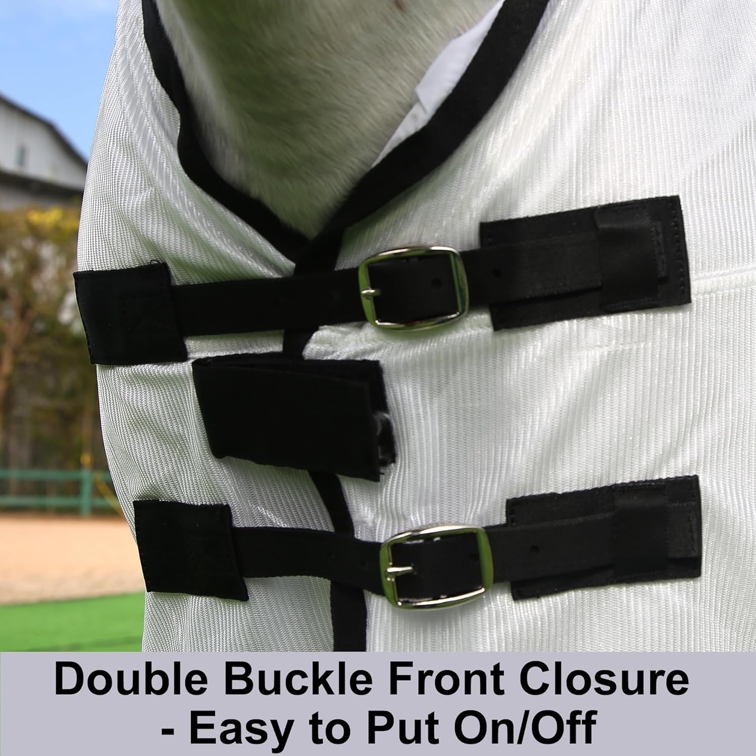 - 【DURABILITY&SECURITY】Double buckle front closure, easy to adjust and secure. Adjustable low cross surcingles keep the flysheet in place. Adjustable and removable leg straps for a comfortable fit. All hardware of the summer sheet is crafted from rust-resistant stainless steel for long lasting