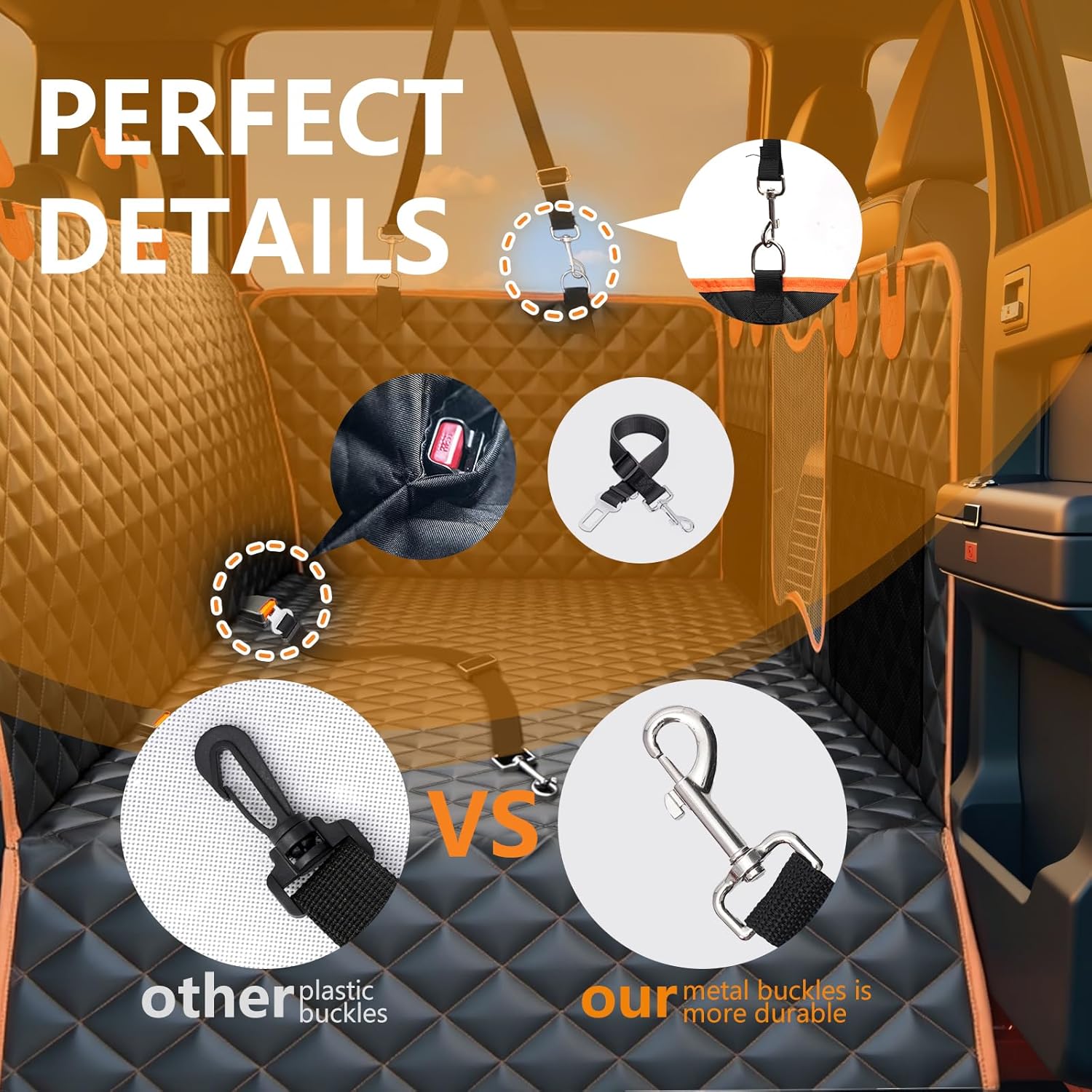 - Extra 65% Backc Seat Space for Maximum Comfort:The dog back seat cover expand your dog's travel space by 65%, giving them more room to relax and enjoy long trips. The extended bottom plate prevents your dog from slipping into the gap between the front and back seats, offering a safer and more comfortable ride.