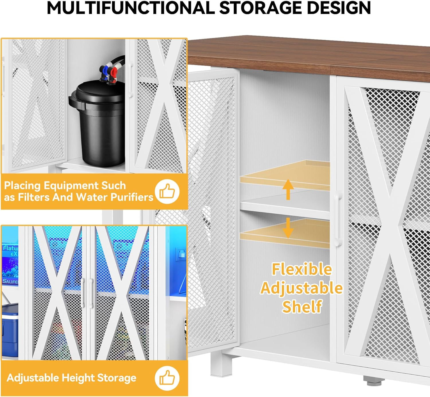 DWVO 75-120 Gallon Aquarium Stand with Power Outlet & LED Light, Cabinet for Accessories Storage - Heavy Duty Metal Fish Tank Stand Suitable for Turtle Tank, Reptile Terrarium, 2000LBS Capacity, White