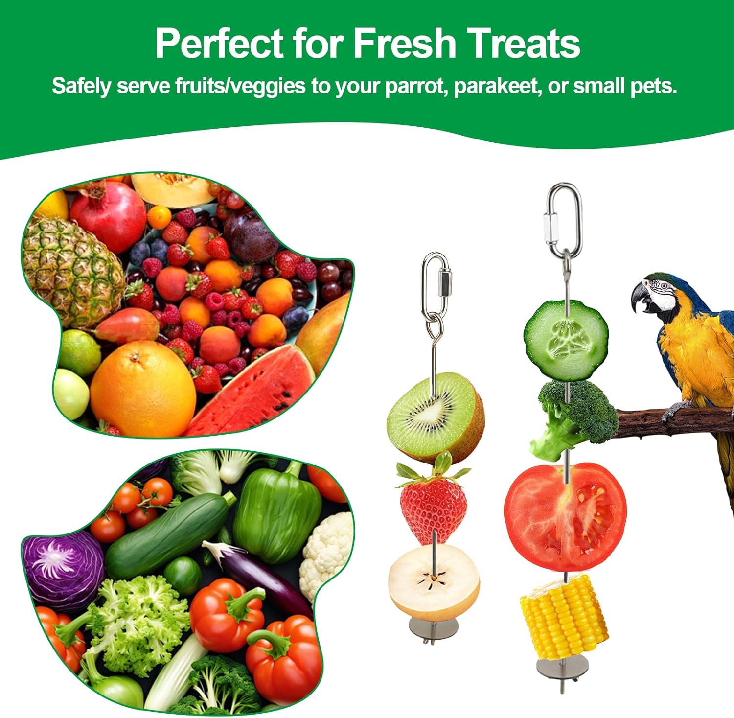 3 Pcs Bird Cage Food Holder Stainless Steel Parrot Fruit & Vegetable Skewer Hanging Foraging Toy for Parakeets, Budgies, Macaws