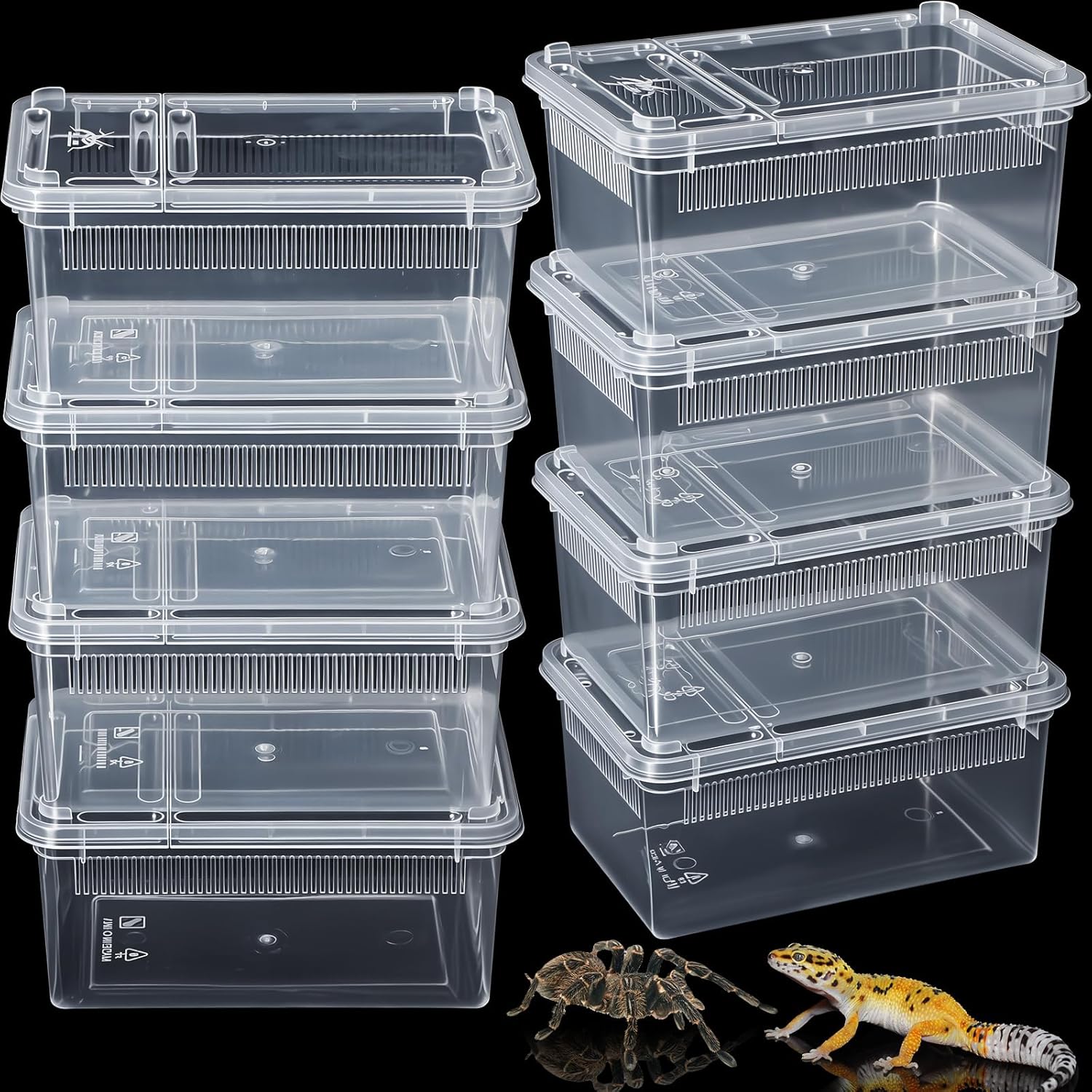 Irenare 8 Pcs Reptile Breeding Breeding Box Plastic Spider Terrarium Tarantula Feeding Box for Bearded Dragon Lizard Spider Gecko Scorpion (Vent Strips,5.9 x 3.9 x 2.5 Inch)