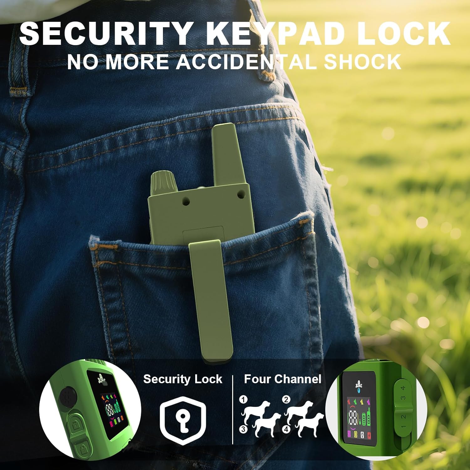 - 【IPX7 Waterproof & Security Lock】 With an IPX7 waterproof rating, this electric dog collar is designed for use in all weather conditions. The secure on/off switch ensures no accidental activation, providing peace of mind while you carry it around