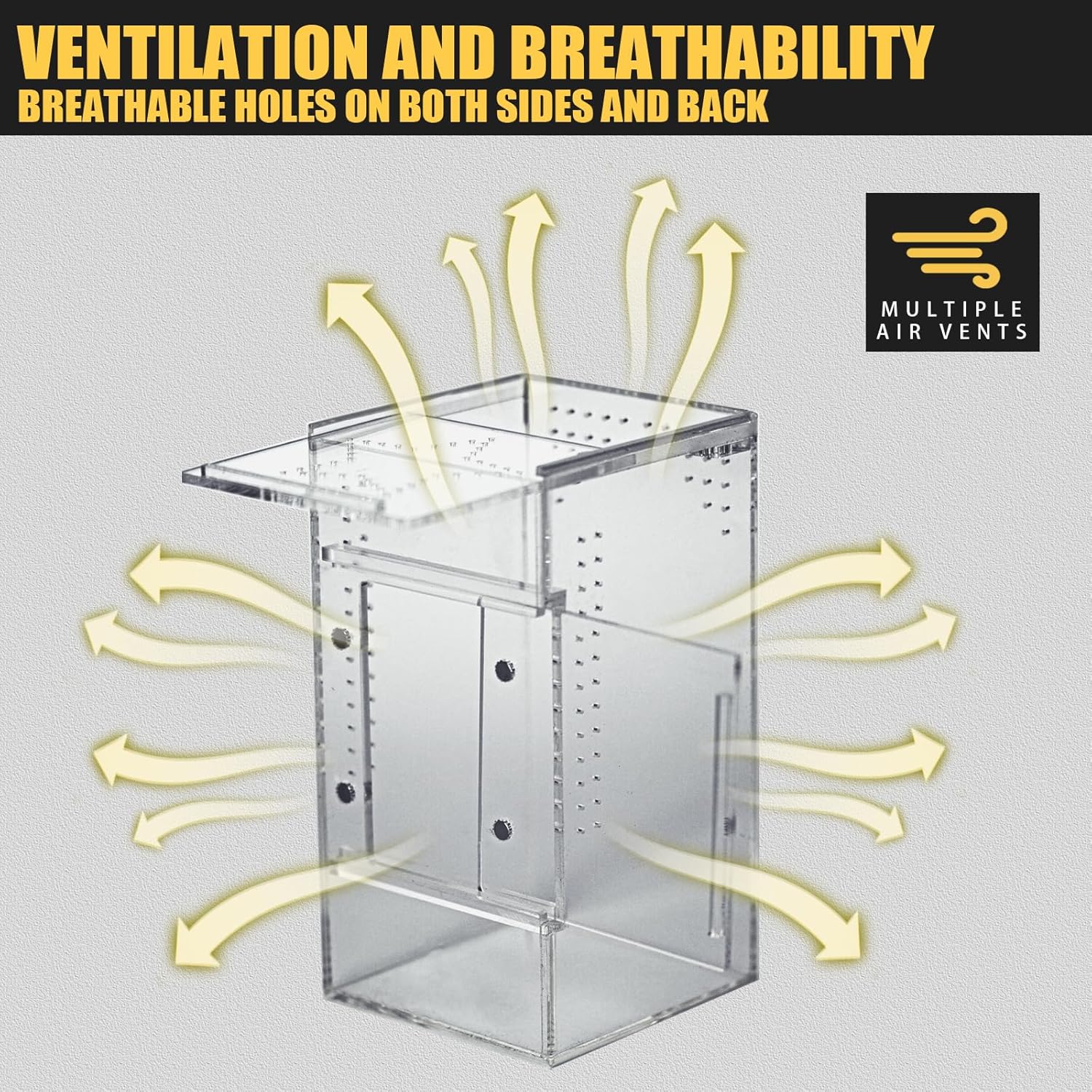 - 💧【Water-Holding Structure for Humid Species】 The bottom of the enclosure can safely hold water, perfect for maintaining humidity levels or creating micro water features. Great for moisture-loving species like jumping spiders and mantises that thrive in humid environments