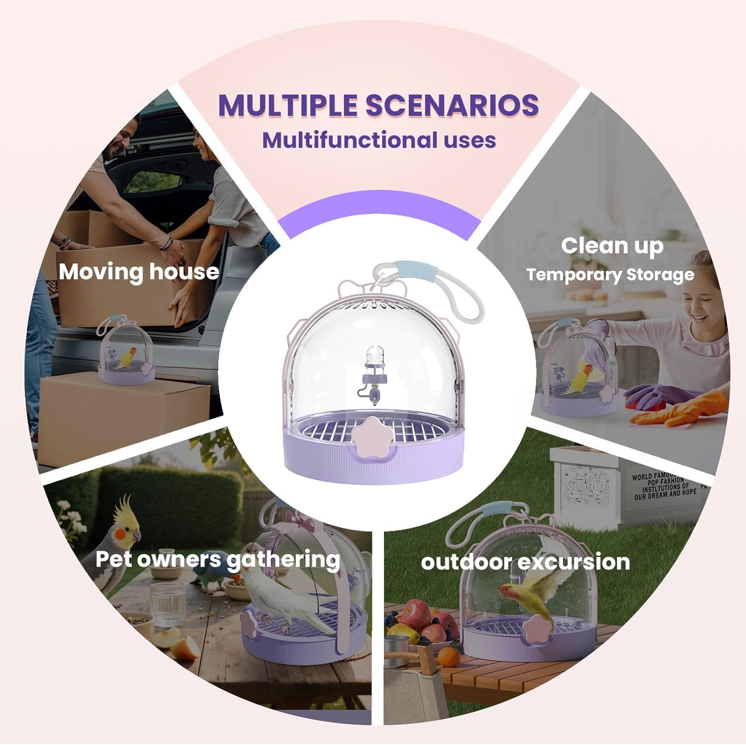 Birdcages,Carriers,Small Bird Travel Cage Carrier, Bird Carry Transport Bag,Small Animal Carrier,Travel Carry-Out Cage with Water Bottle (Purple)