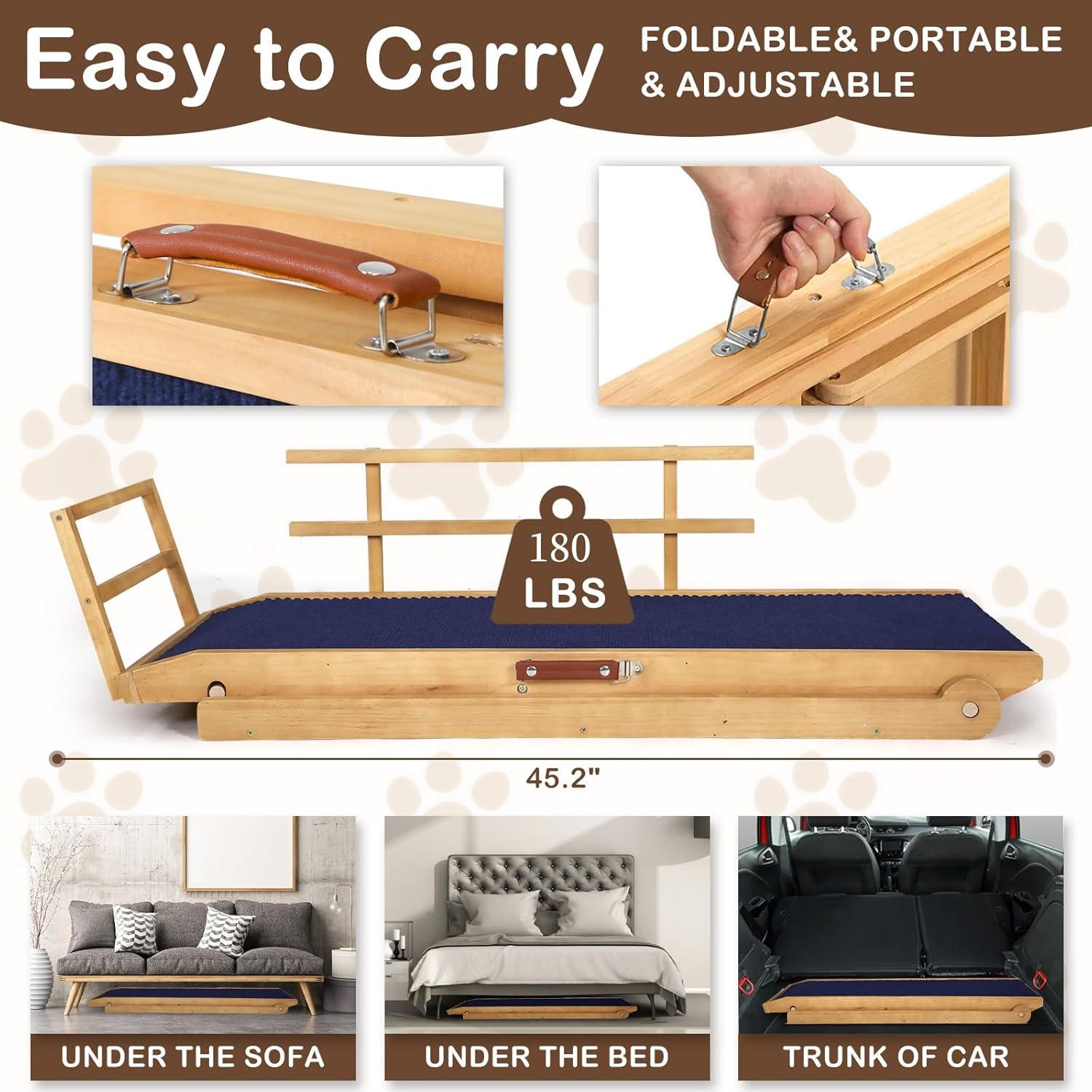 - Super Load-Bearing Capacity 180 Pounds - Solid wood support for small and medium-sized dogs (Corgis, Labrador, etc.), no noise and no deformation during use.This safety pet ramp can protect the joints of naughty children very well.