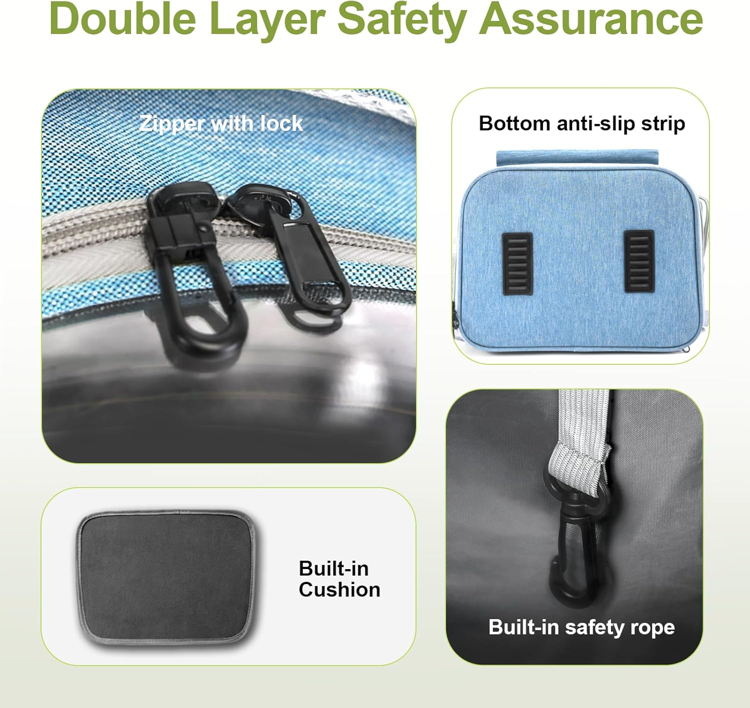 - Secure and Convenient Features: Designed with your pet's safety in mind, our cat backpack is equipped with a variety of secure and convenient features. The shoulder strap comes with a chest buckle, keeping the backpack stable and preventing shoulder strain. The zipper is designed with a lock, providing extra security during travel. Additionally, the built-in anti-escape safety leash ensures that your pets stay securely inside the backpack at all times.