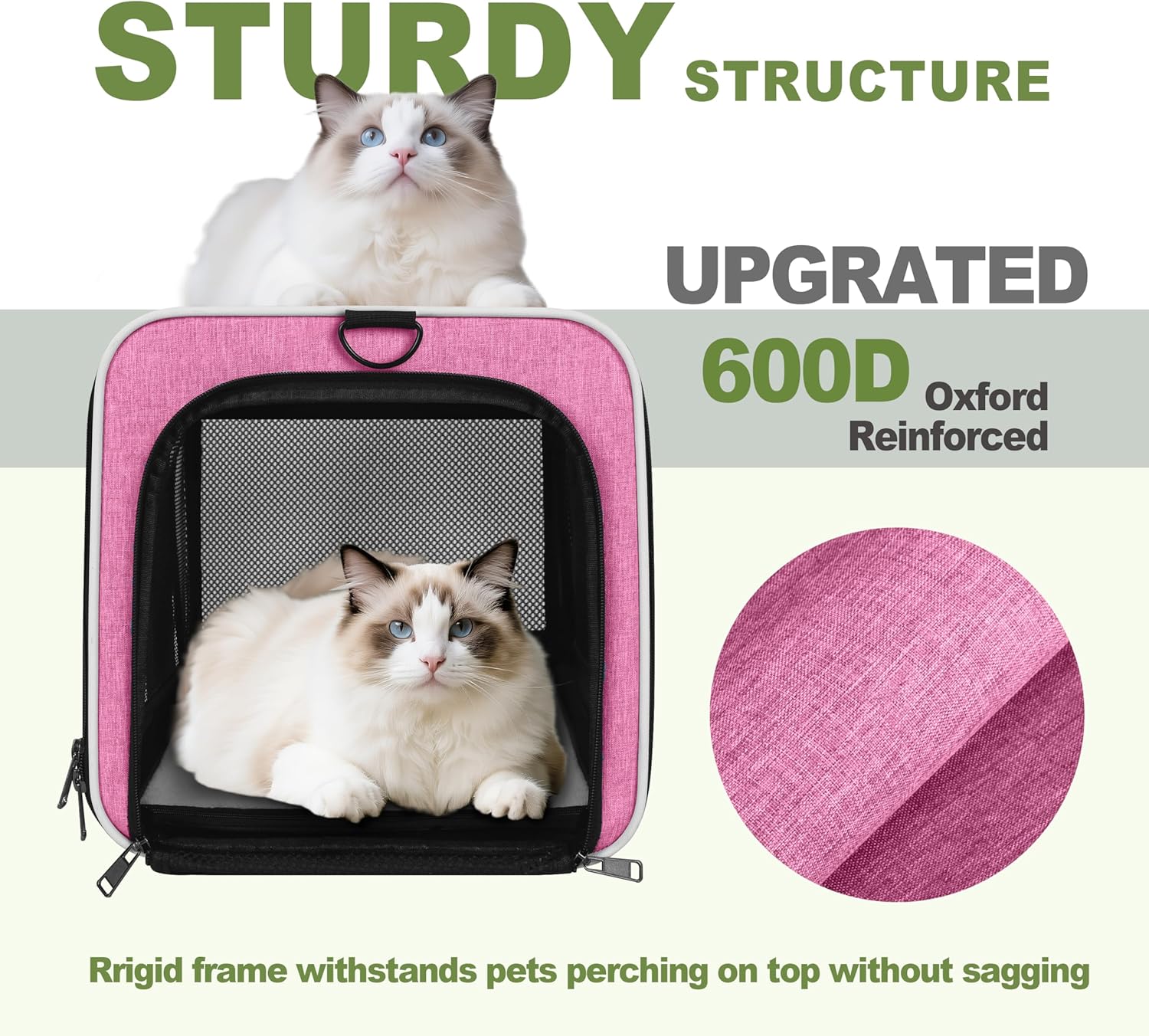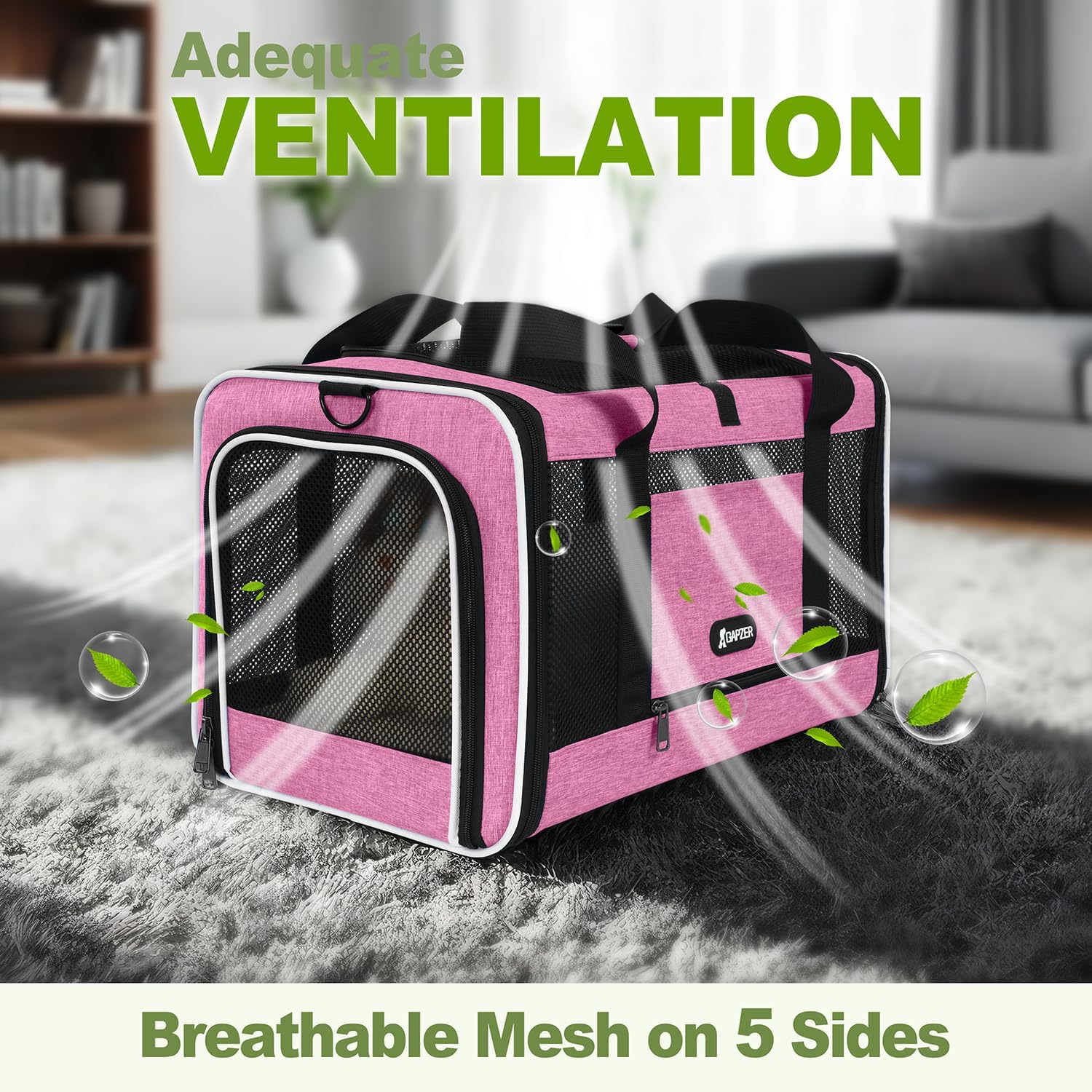 Cat Carrier 18x11x11 Delta Airline Approved, Easy Load Soft Pet Plane Travel Bag 15 pounds, Teacup Dog Crate 12 lbs, Yorkie Kennel Carrying Case, Kitten Toy Poodle Mesh Cage up to 20lbs Pink