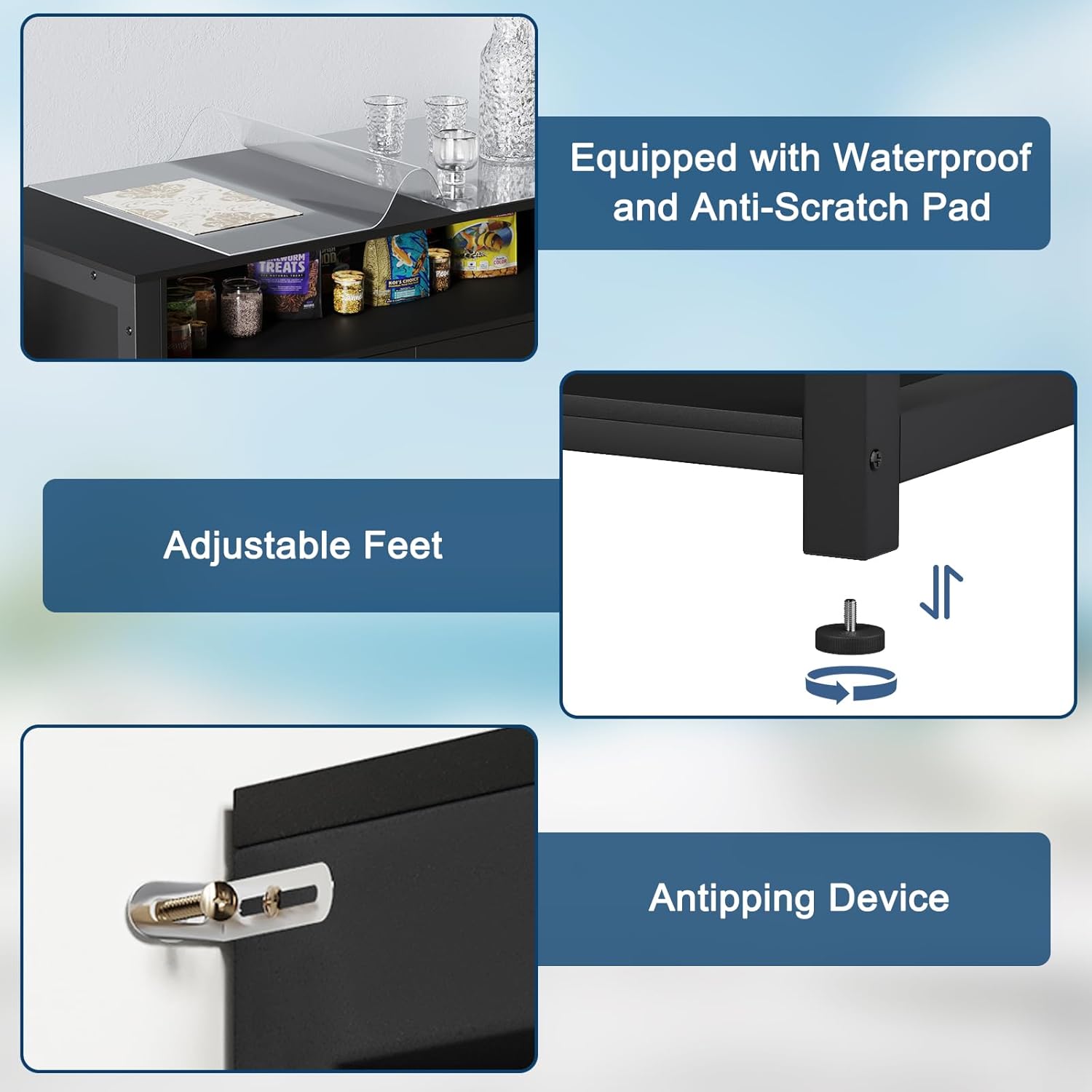 - Ample Storage Space – With 2 spacious drawers for fish food and accessories PLUS an open storage shelf and dual-tier open shelving, this aquarium stand offers versatile organization. Use the extra space for additional small tanks, decor, or tools—keeping your aquatic setup clean and clutter-free.