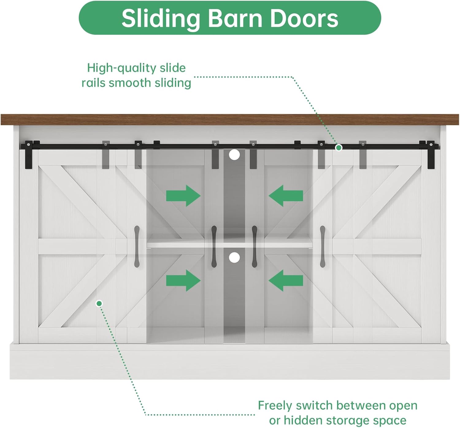 - 【Stylish Farmhouse Design】The rustic-chic barn door system transforms between open-access and concealed storage modes, while the matte textured finish resists scratches and water marks - blending flawlessly with contemporary, industrial or farmhouse decors as a functional furniture centerpiece.