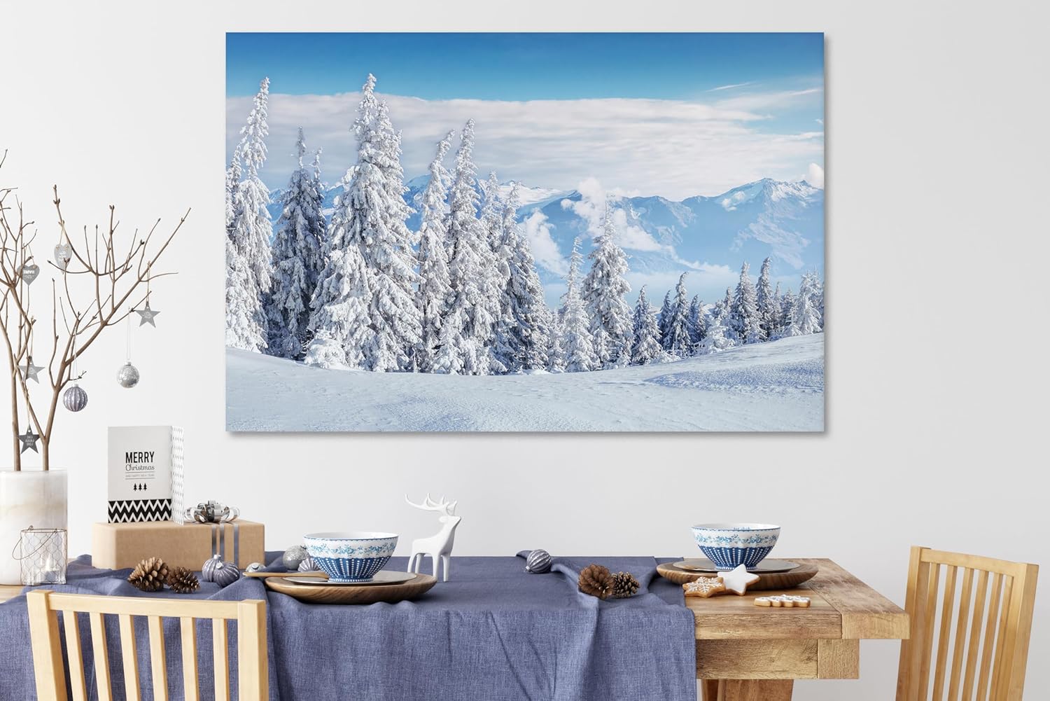 Nature Wall Art Prints - Ocean Forest Mountain Lake Canvas Landscapes - Small to Extra Large Living Room Bedroom Kitchen Bathroom Décor (Snow Covered Trees on Mountain, 28L" x 41W")