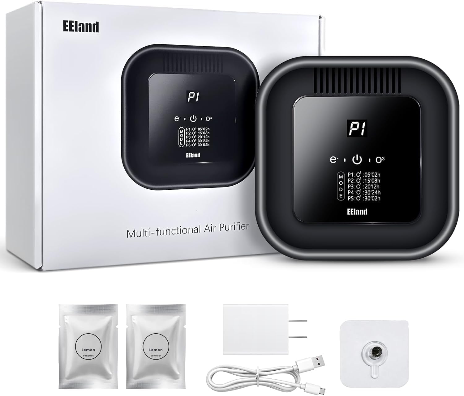 Cat Litter Deodorizer – 99% Odor Removal, Ozone Air Purifier for Pets, Strong Odor Eliminator for Litter Box, Toilet, Closet, Cabinet, Shoe, Garage, Small Room – Black